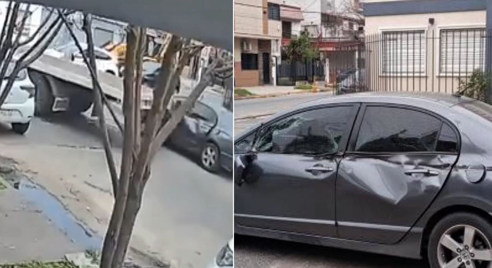 Lanús: un camión semirremolque arrastró un auto estacionado y escapó