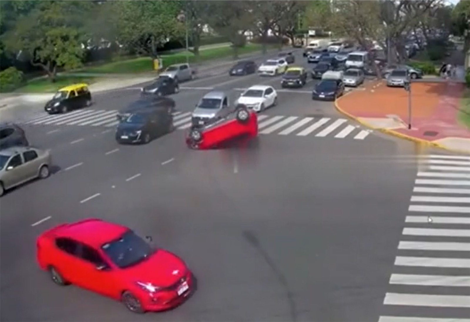 Las primeras investigaciones indican que un tercer vehículo, que intentaba girar hacia la Avenida Casares, habría provocado la reacción en cadena que terminó con el vuelco del Volkswagen.