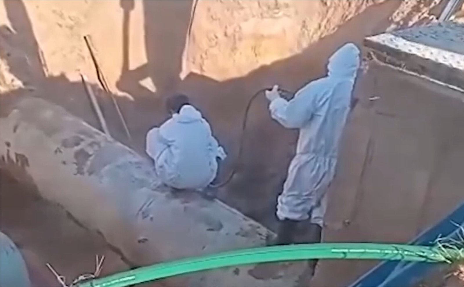 El hecho ocurrió durante la conexión de una nueva tubería. En pleno trabajo dentro de un pozo, un chorro de agua surgió con fuerza tras el corte de una conducción y expulsó a los trabajadores hacia el exterior. Uno de ellos utilizaba una amoladora y el otro lo asistía con el cable de la herramienta.